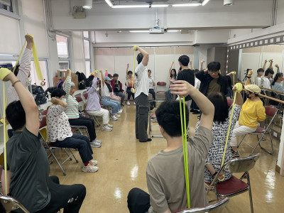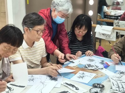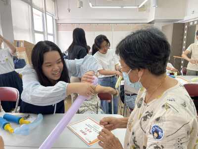 其餘五節活動分別由長者教導大學生水墨畫體驗、滴膠活動及扭氣球,而大學生則指導長者運動安全、彈力帶活動及毛絨花;