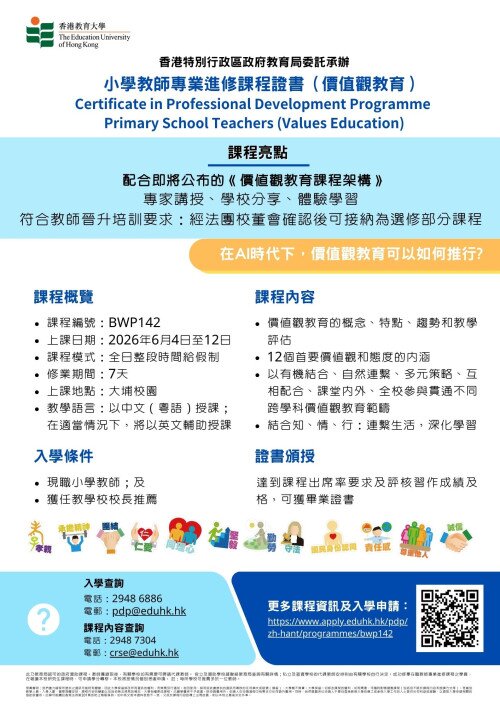 | 课程查询 | 香港教育大学宗教教育与心灵教育中心 电话: 2948 8285 / 2948 7304 电邮: crse@eduhk.hk |