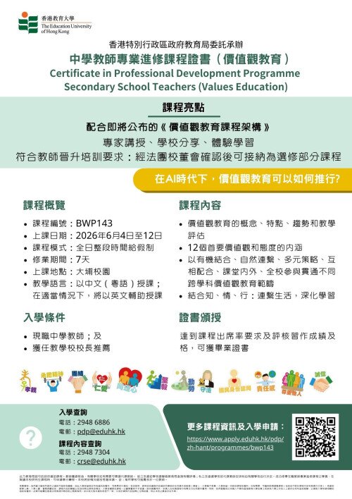 | 课程查询 | 香港教育大学宗教教育与心灵教育中心 电话: 2948 8285 / 2948 7304 电邮: crse@eduhk.hk |