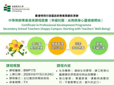 BWP173 - 教師專業進修課程證書 (幸福校園: 由教師身心靈健康開始) (中學)